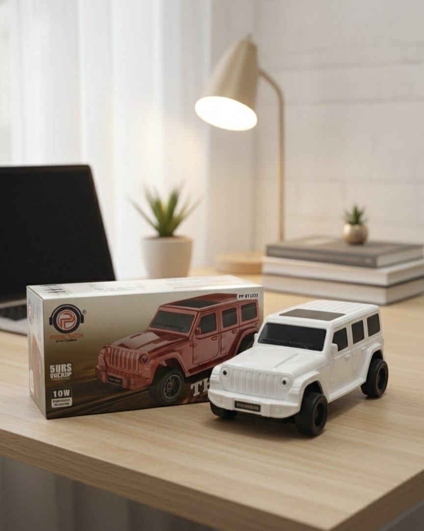 COD AvabileIconic Design: A meticulously detailed, miniature off-road SUV in a sleek white finish. It looks just as good on a bookshelf as it does on your office desk! π Seamless Connectivity: Equipped with advanced Bluetooth technology, allowing you to pair your smartphone or laptop instantly for a wire-free experience. π±π» Immersive Sound: Donβt let the size fool you. The PP-BT1215 delivers crisp, clear audio with a punchy bass that “radiates” right from the roof. ππ΅ Interactive Visuals: Features glowing “sound wave” accents and musical note indicators to bring your playlist to life.